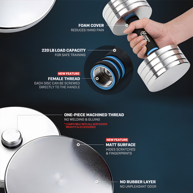 Adjustable Chrome Dumbbell with Foam Handles for Commercial Gym Equipment Wholesale