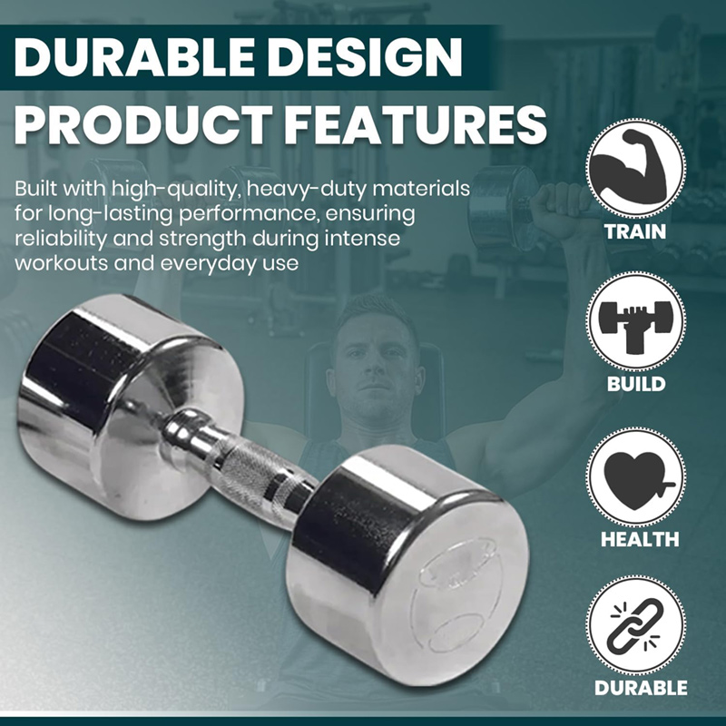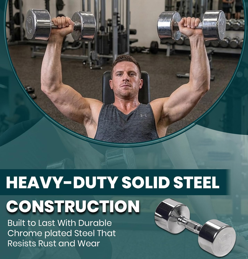 Crafted with heavy-duty solid steel, the dumbbell is finished with a highly reflective chrome plating that resists chipping, cracking, and peeling over time. Unlike traditional iron dumbbells that wear easily, the polished steel heads maintain a clean, professional look even with repeated use. The chrome not only ensures long-lasting durability but also elevates the appearance of any fitness space with its sleek, modern design.