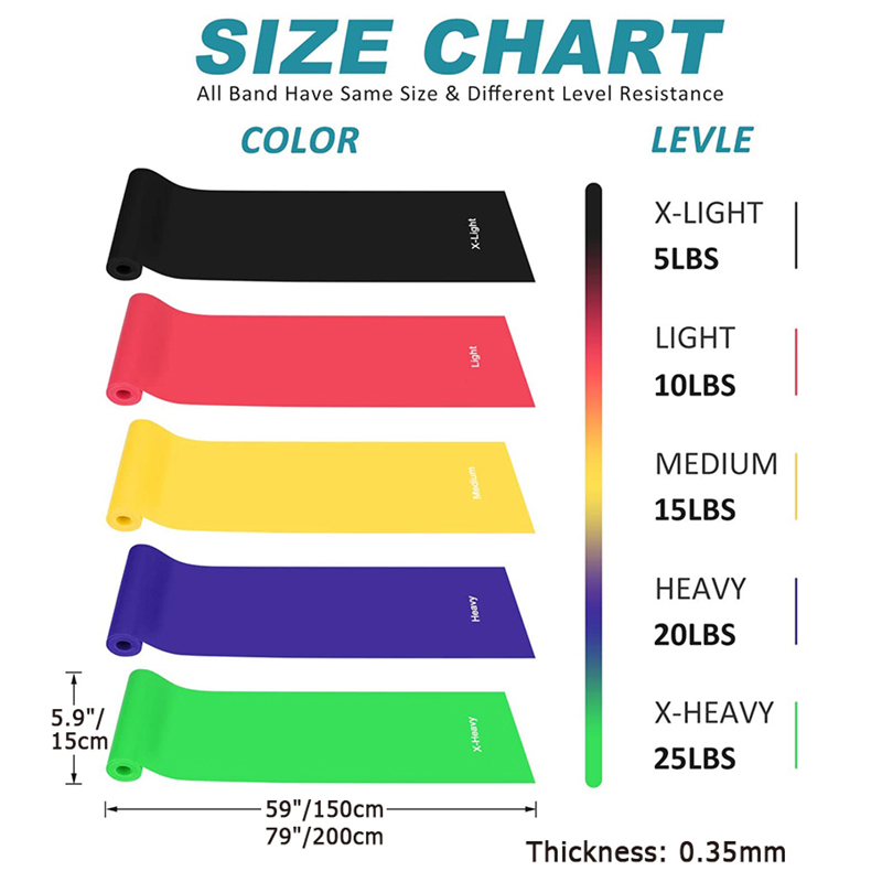 Five levels included: Whether you’re looking to stretch it out or challenge yourself, your bands include five different resistance levels to meet your needs and goals. Mix and match to find your ideal level.