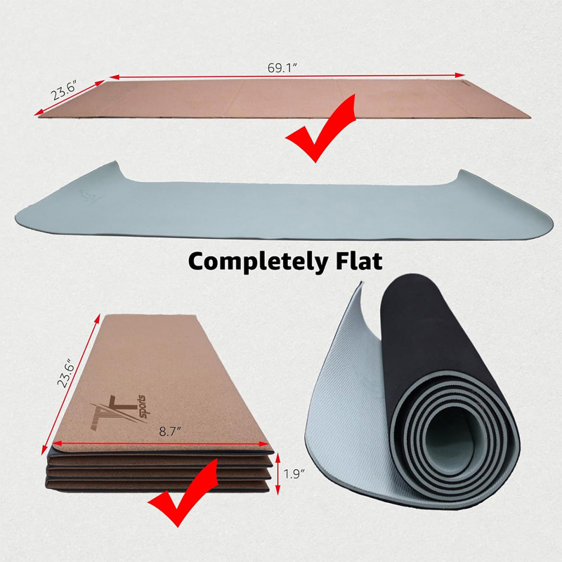 Le tapis de yoga se plie en accordéon pour un rangement facile. Une fois plié, il mesure 60 cm x 22 cm x 4,8 cm (23,6 x 8,7 x 1,9 pouces). Sa conception pliable permet d'ajuster l'épaisseur du tapis selon vos séances de yoga, offrant ainsi différents niveaux d'amorti et de soutien. Une fois déplié, il reste parfaitement plat sans se recourber et ne nécessite aucune sangle pour le maintenir en place.